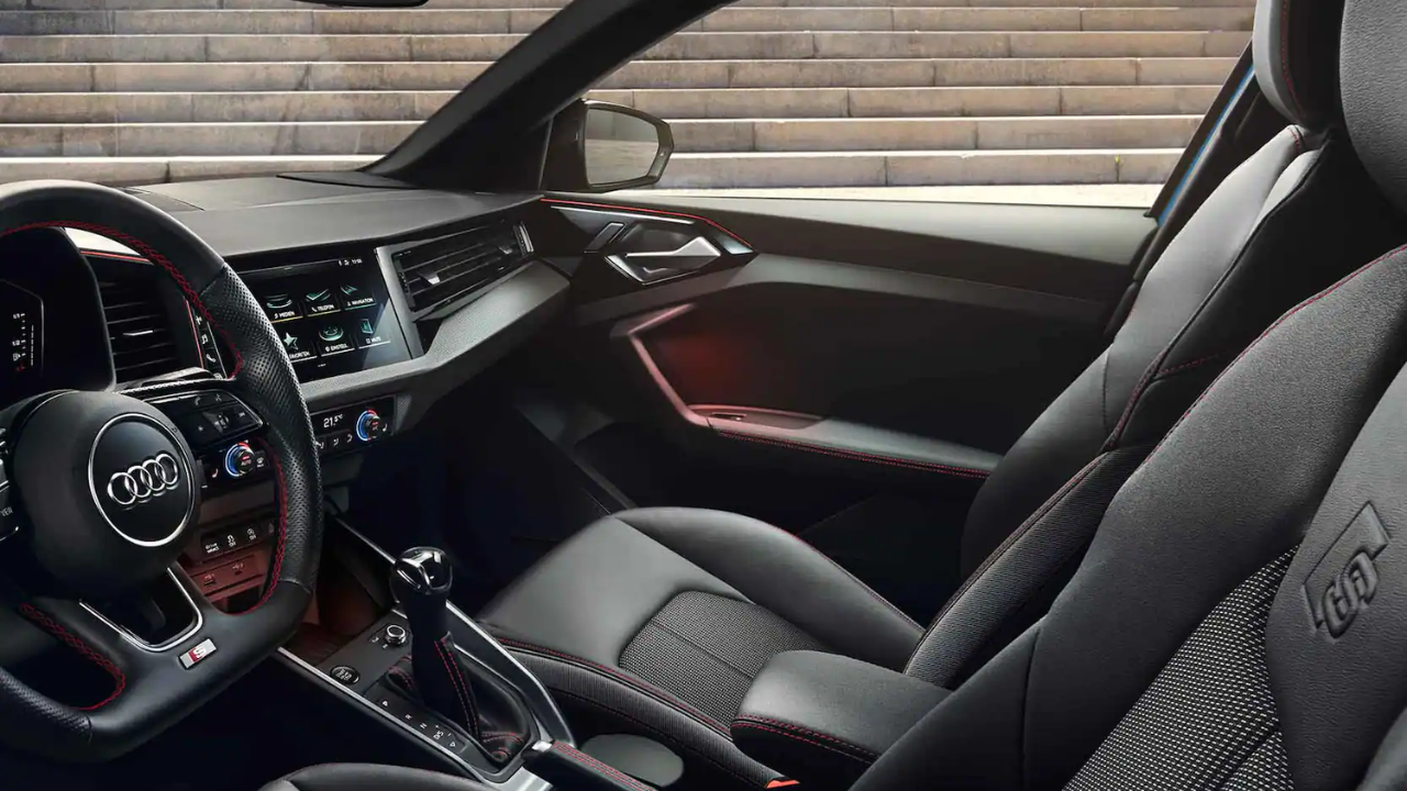 I dettagli sportivi includono cuciture in rosso Audi Sport4 che richiamano i poggia braccia delle portiere (disponibili come optional), la corona del volante, i tappetini, i sedili sportivi, il bracciolo anteriore e quello centrale (su richiesta).