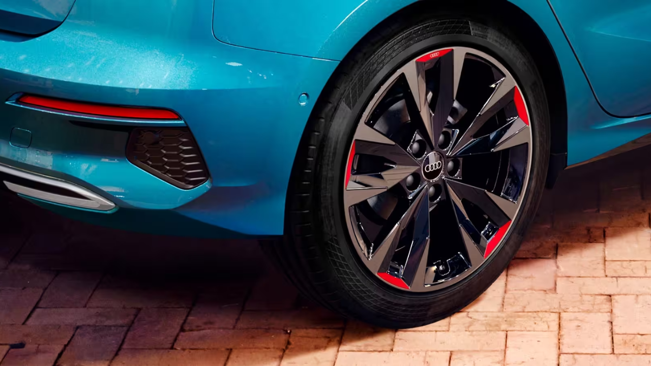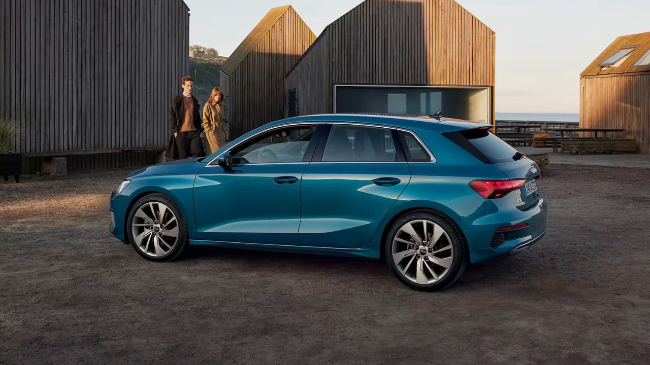 Il carattere sportivo di Audi A3 Sportback in Blu Atollo metallizzato domina la strada.