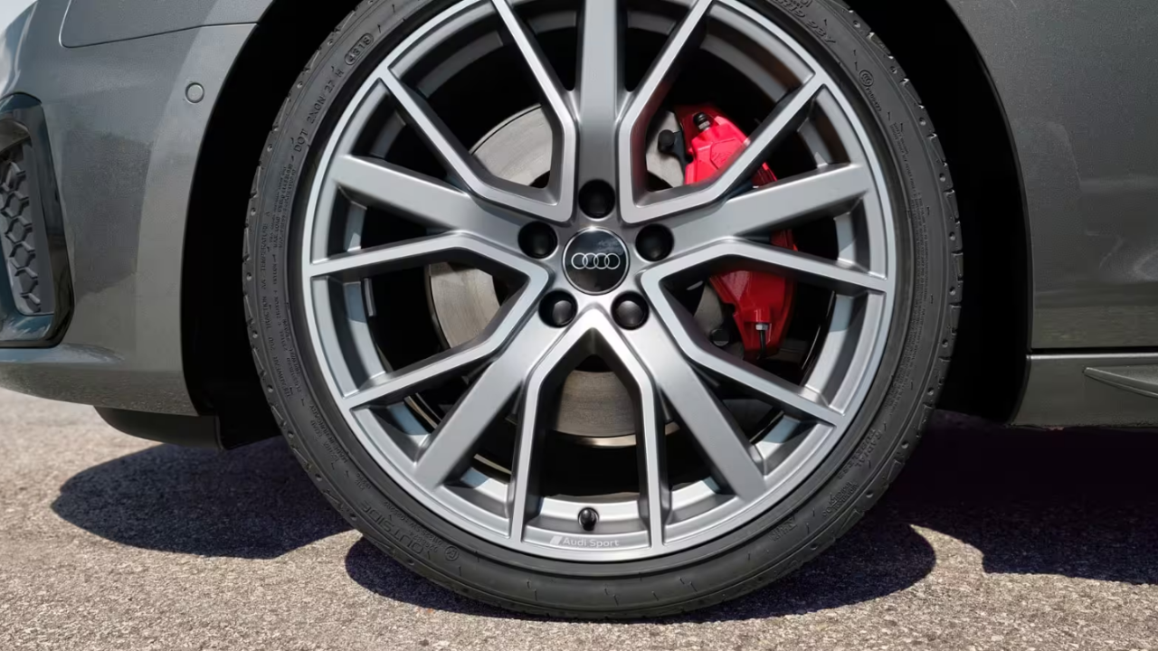 I cerchi in lega opzionali Audi Sport con design a stella in color Grigio Titanio opaco e le pinze freno Rosse, disponibili su richiesta, rendono la tua Audi A4 Avant ancora più sportiva.