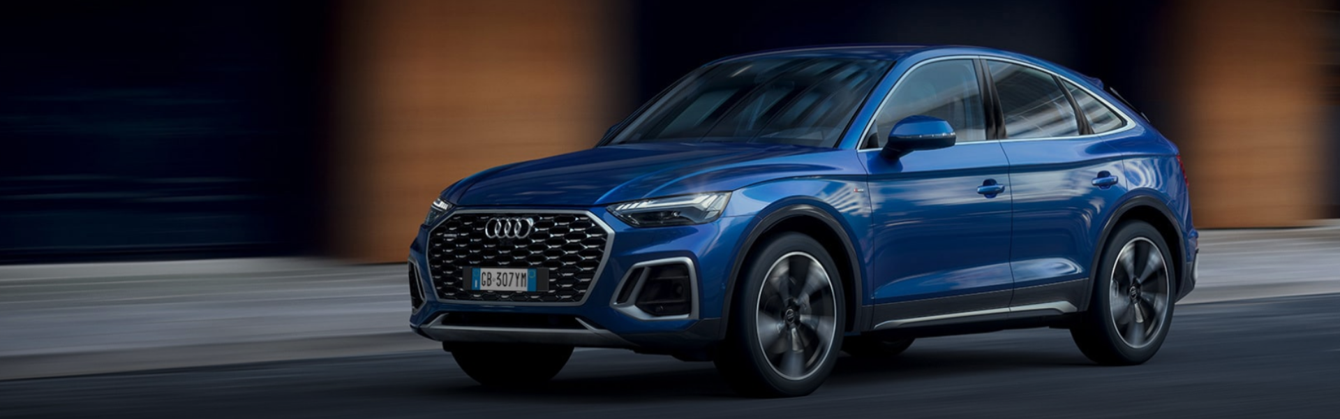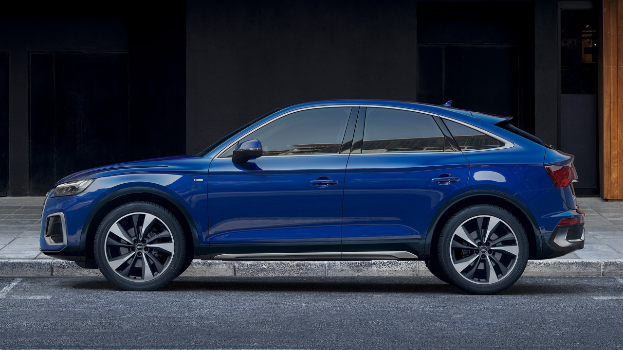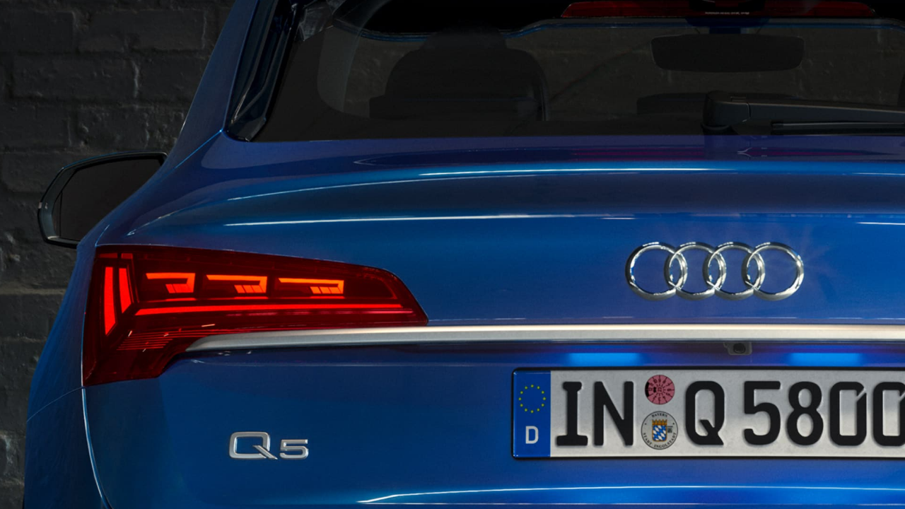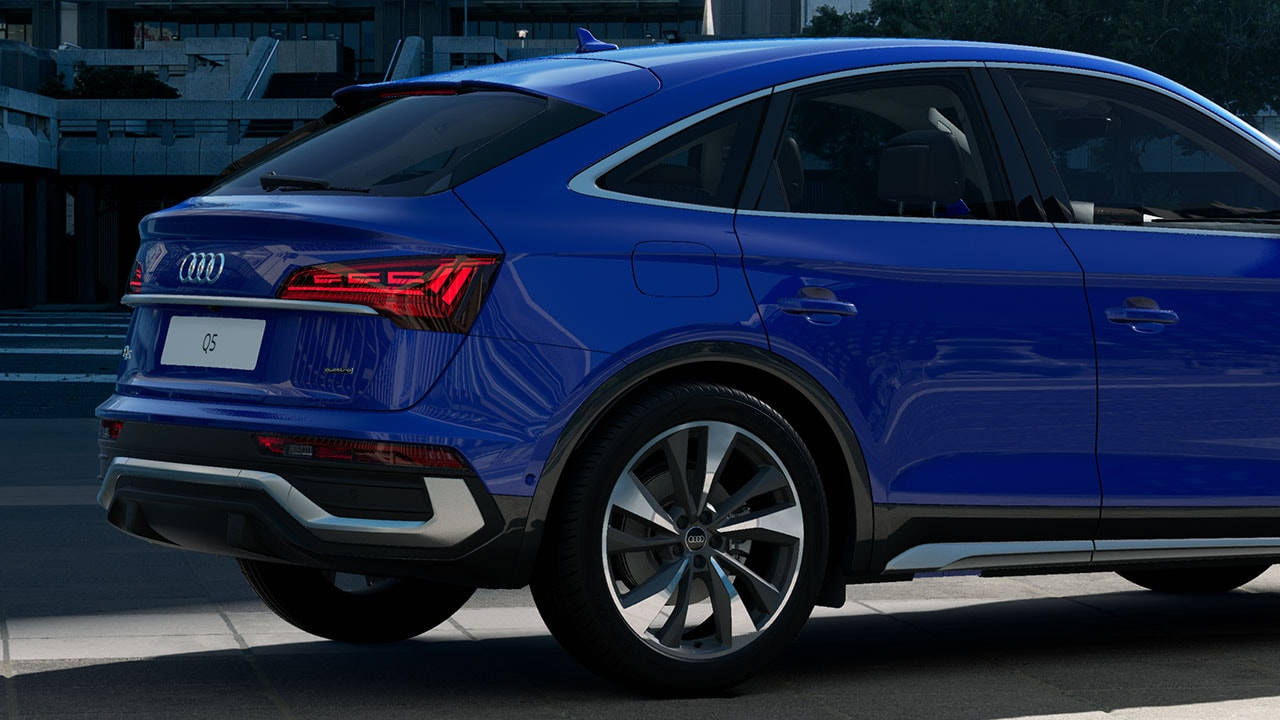 Il design di Audi Q5 Sportback dona a questa vettura un carattere sportivo e grande carisma. Il posteriore inclinato, ampio e uniforme, ricorda quello di una coupé, e aggiunge espressività alla linea del tetto, accentuando l’aspetto aerodinamico del veicolo. Il diffusore con finiture orizzontali, la linea cromata che si estende lungo tutta l’ampiezza del veicolo e lo spoiler sportivo al tetto conferiscono ulteriore dinamismo. L’allestimentoS line, disponibile come optional, aggiunge accenti e dettagli ancora più grintosi.