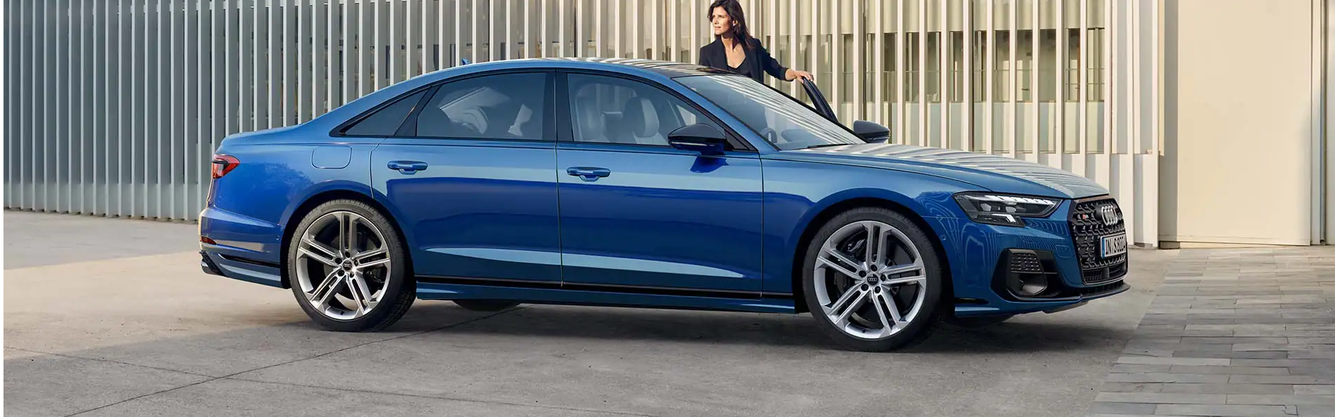 La berlina business nella sua declinazione più sportiva. Nuova Audi S8 in Blu Ultra metallizzato con tutti i dettagli interni ed esterni specifici S.