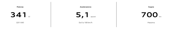 Il motore 3.0 litri V6 TDI da 341 CV di potenza di Audi SQ5 Sportback e i cambi di marcia rapidi e impercettibili della trasmissione tiptronic a 8 velocità, garantiscono una guida fluida e scattante; la trazione integrale permanente quattro, di serie, distribuisce la potenza in modo variabile tra gli assi anteriore e posteriore. Con un’accelerazione da 0 a 100 km/h in 5,1 secondi e una velocità massima di 250 km/h, regolata elettronicamente, Audi SQ5 Sportback assicura un’esperienza di guida senza precedenti.