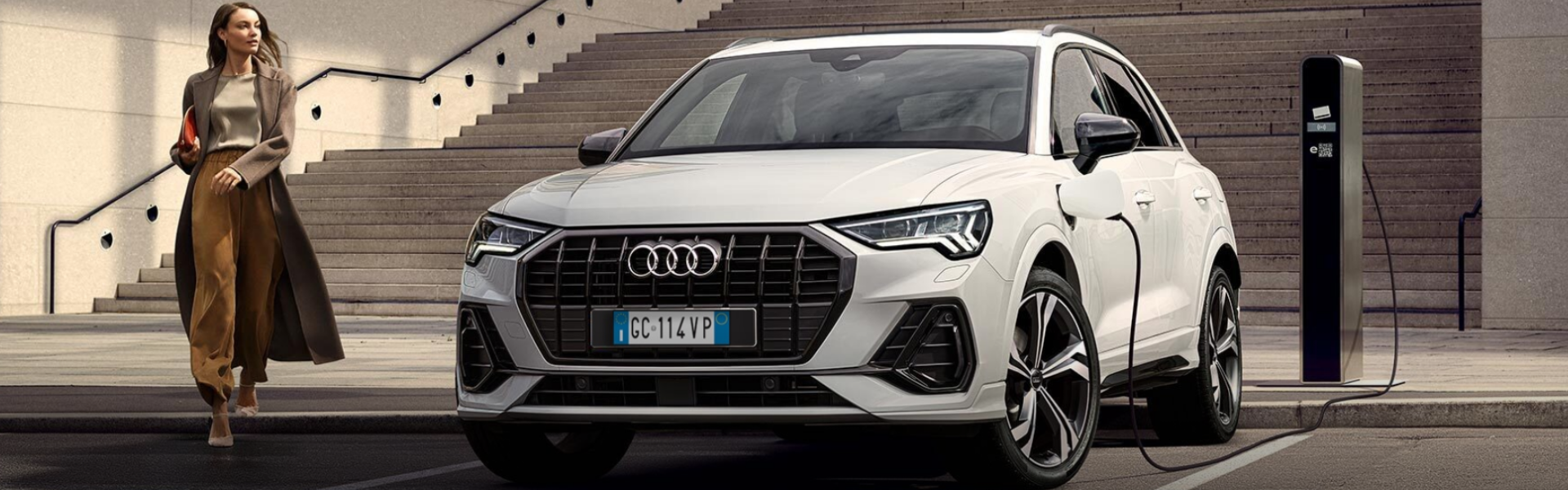 Con il sistema di ricarica standard e-tron compact, è possibile ricaricare la vostra Audi Q3 TFSI e a casa, utilizzando direttamente prese di corrente domestiche o industriali, dotate di una capacità di ricarica fino a 3,7 kW⁵.