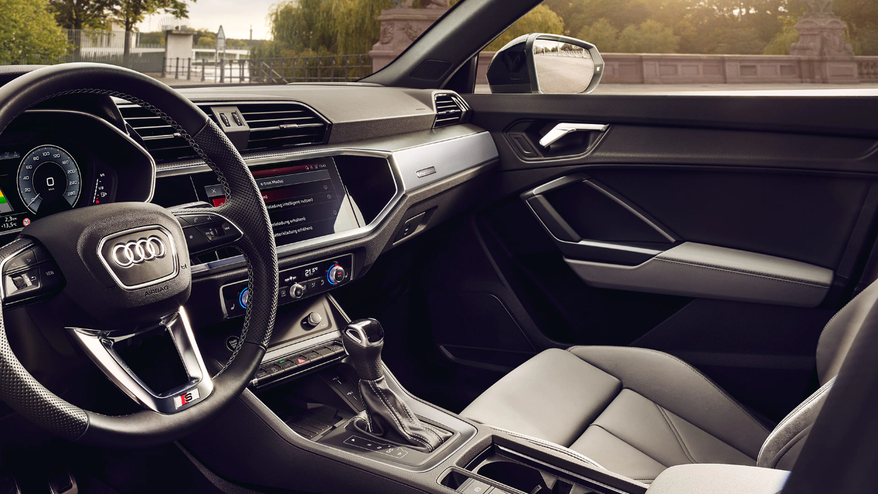 I pacchetti per gli interni Design Selection e S line rappresentano due esclusive opzioni per personalizzare l’abitacolo di Audi Q3 TFSI e. Il pacchetto Design Selection prevede l’aggiunta di inserti in Alcantara al cruscotto e ai braccioli delle portiere.