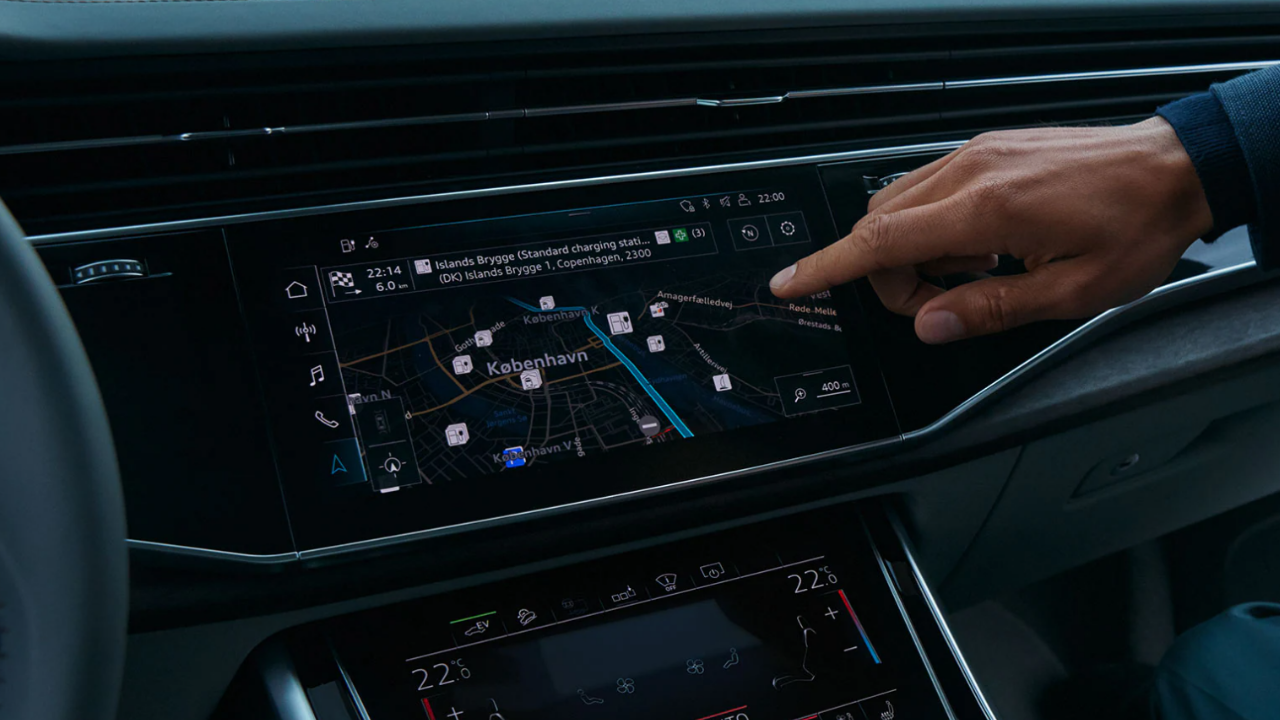 Prendete in mano la vostra vita a bordo di Audi Q7 TFSI e. Grazie al sistema di navigazione MMI plus con MMI touch response, avrete a disposizione due display controllabili attraverso la funzione touch o con i comandi vocali. L’MMI fornisce anche l’accesso ai servizi digitali di Audi connect². L’Audi virtual cockpit ad alta risoluzione, di serie, mostra tutte le informazioni principali del veicolo e consente di monitorare i dati specifici della modalità ibrida, come lo stato della ricarica e l’autonomia residua.