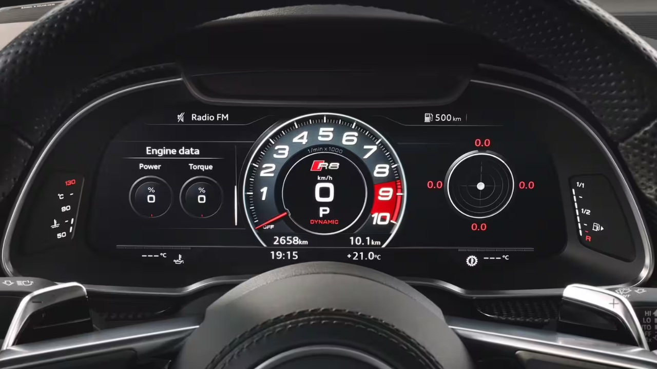 Il motore V10 aspirato di Audi R8 Coupé V10 performance quattro può raggiungere i 100 km/h in 3,1 secondi e una velocità massima di 331 km/h.