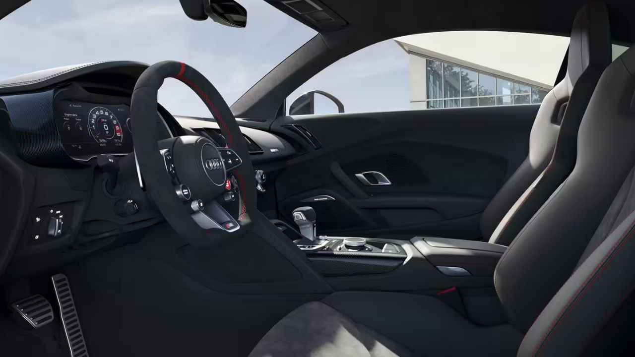 Ogni dettaglio dell’abitacolo è pensato per esprimere al massimo l’esclusività di Audi R8 GT. La personalizzazione con inserti in carbonio twill, ad esempio, è disponibile di serie, così come il rivestimento del tetto in Alcantara