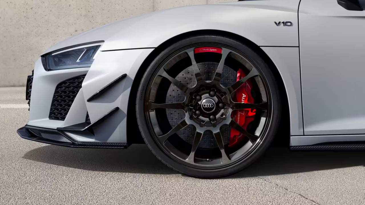 Audi R8 GT regala performance di guida sensazionali grazie al più potente e innovativo motore V10 a trazione posteriore nella storia di Audi, riconoscibile anche dal collettore di aspirazione nero. Consumo di carburante nel ciclo combinato: 15,0–14,9 l/100 km; emissioni di CO₂ nel ciclo combinato: 341–339 g/km (dati riferiti al mercato tedesco).