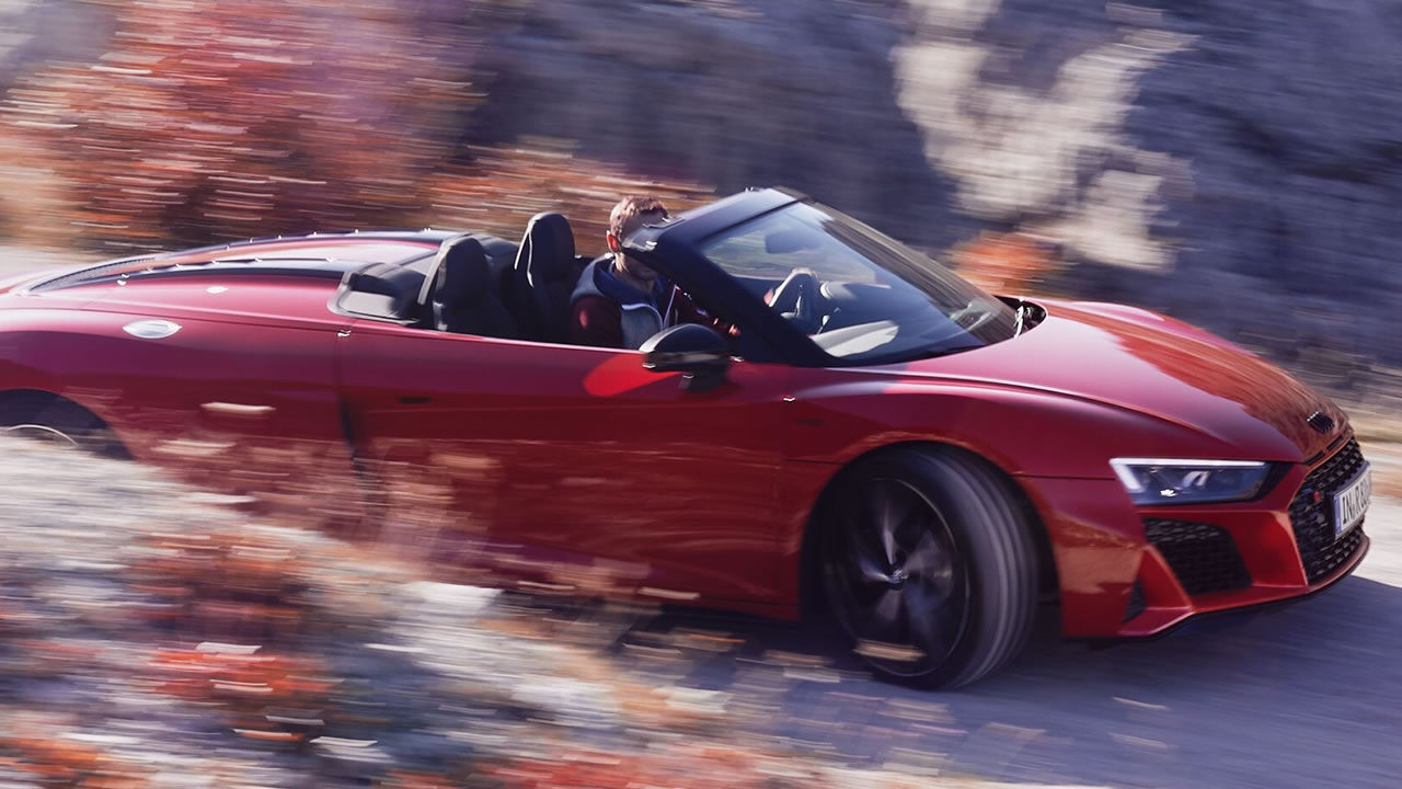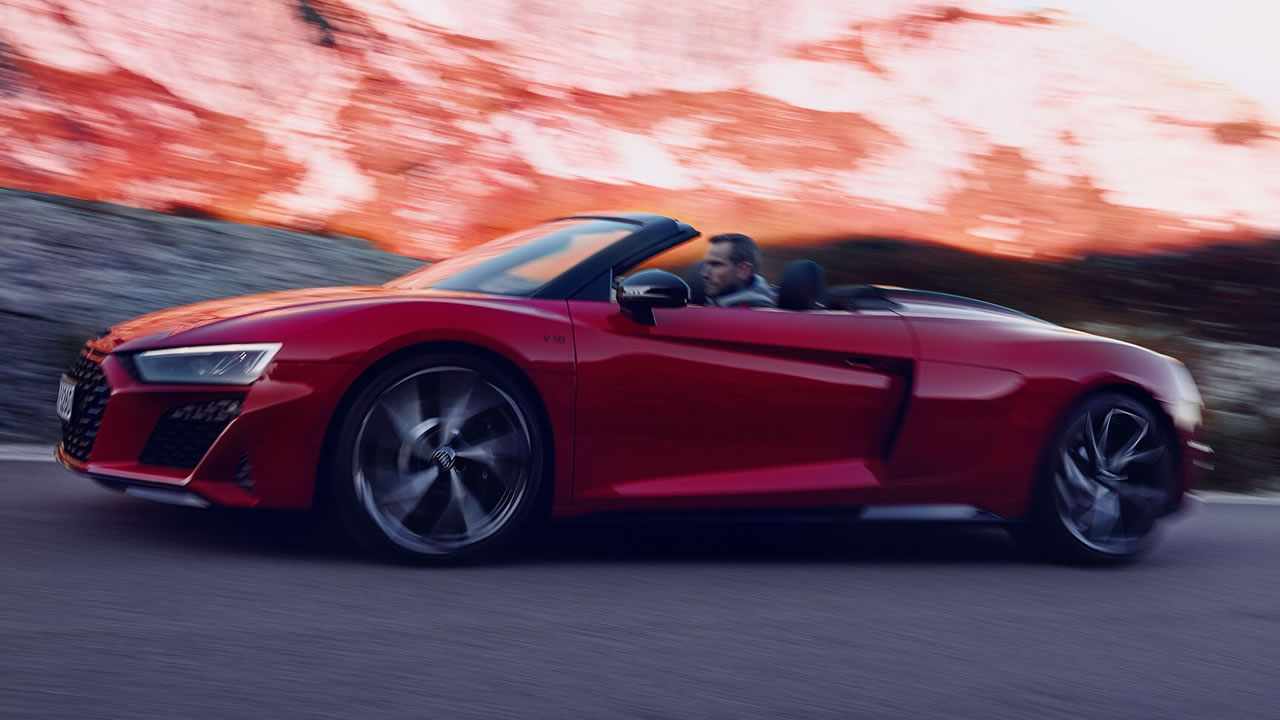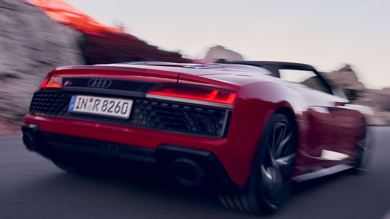 Proprio dietro il vano passeggeri c’è il cuore pulsante di Audi R8 Spyder V10 RWD. Il motore V10 stupisce grazie al suo suono inconfondibile e alla risposta fulminea ai comandi dell’acceleratore. Le bastano 3,8 secondi per scattare da 0 a 100 km/h, fino a raggiungere una velocità massima di 322 km/h.