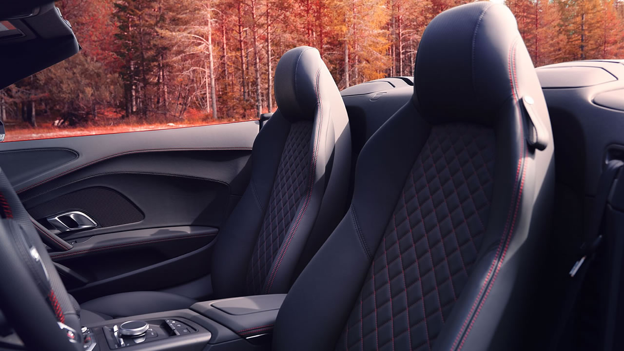 L’energia del vento, il rombo del motore: guidare Audi R8 Spyder V10 RWD con la capote aperta è un’esperienza indimenticabile. Fino ai 50 km/h, il sistema elettroidraulico ripiega il tetto morbido sotto una copertura in CFRP, in soli 20 secondi. Con il solo tocco di un tasto, è possibile alzare o abbassare il frangivento per regolare l’afflusso d’aria nell’abitacolo.