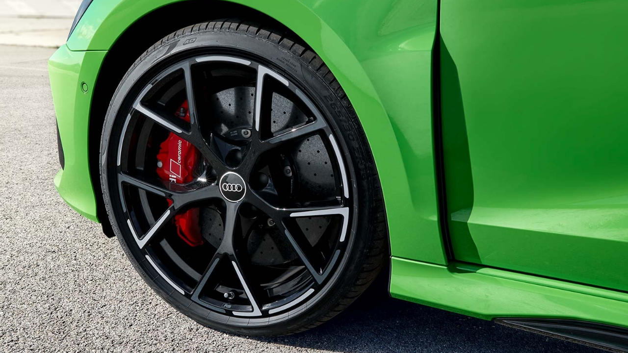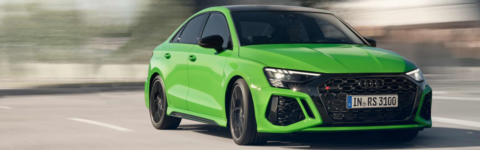 Gli elementi esterni RS in nero opaco, di serie per Audi RS 3 Sedan, definiscono un contrasto deciso con