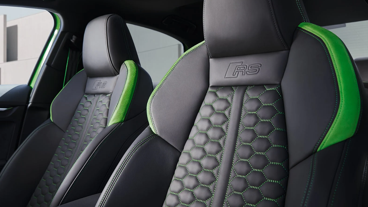 d'ape, sono resi ancora più accattivanti dal pacchetto design RS plus, disponibile come optional sia in verde che in rosso. A completare il look sportivo degli interni è l'inserto monoblocco specifico RS, con superficie impreziosita da dettagli in carbonio opaco Atlas, disponibile come optional.
