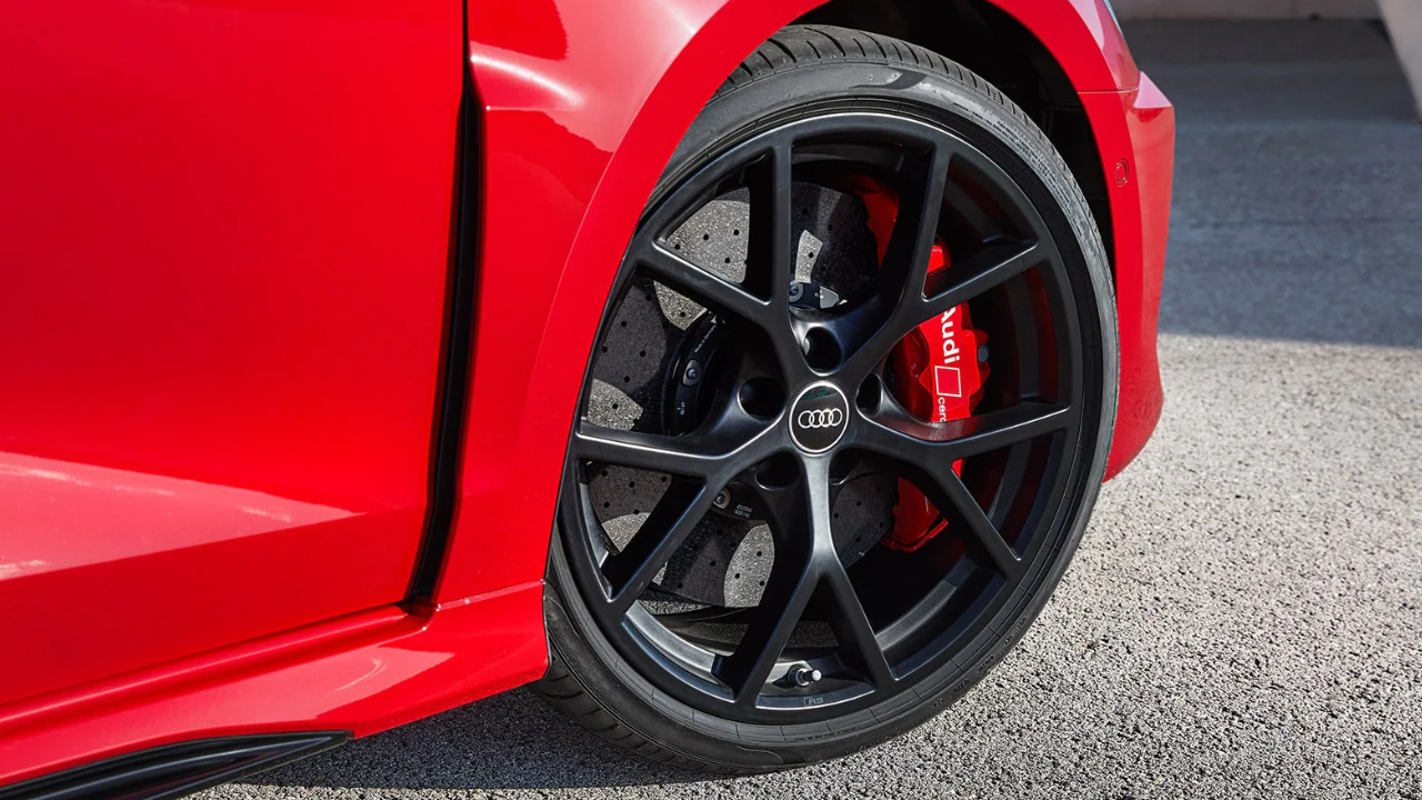 elevate, disponibili come optional, permettono di vivere a pieno le performance sorprendenti di Audi RS 3 Sportback anche su strade asciutte. Le feritoie sulle porte anteriori e i cerchi in lega da 19” esprimono il carattere da competizione del veicolo.