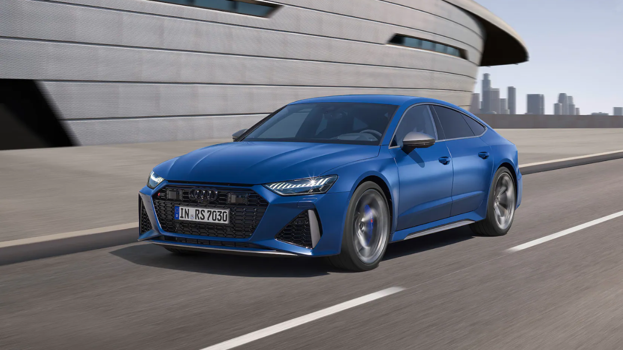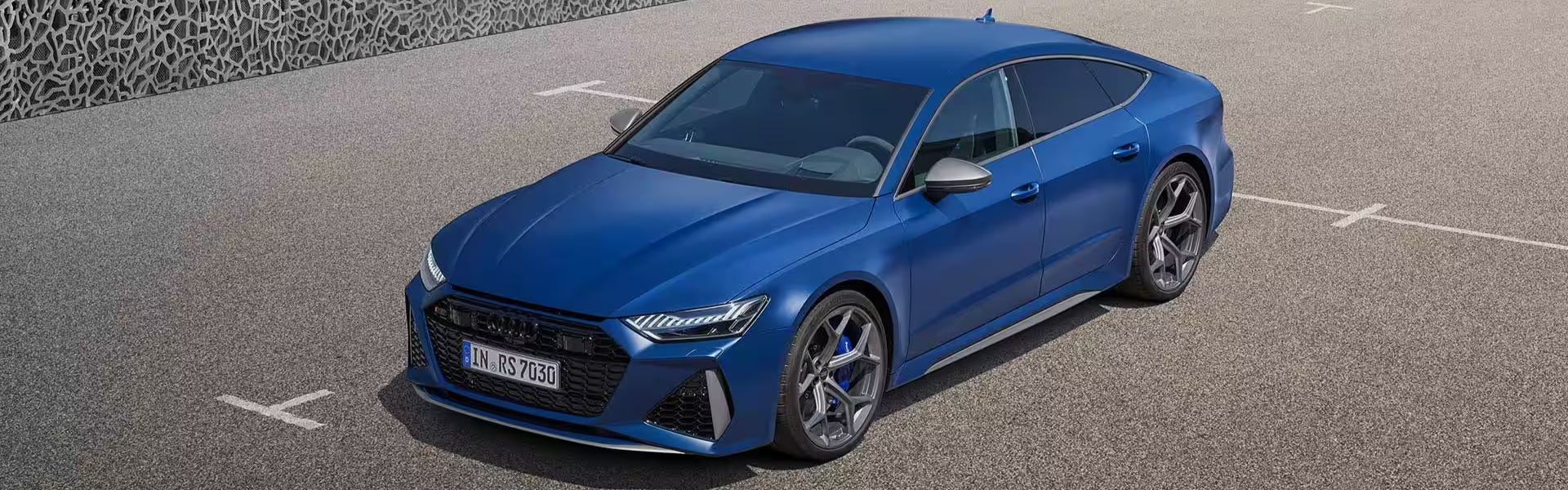 Potente nel look e nel carattere. Audi RS 7 Sportback performance esprime forza in ogni singolo dettaglio. La vernice Blu Ascari effetto opaco, disponibile su richiesta, e gli elementi in Grigio opaco, di serie, conferiscono alla vettura un carattere inconfondibile.