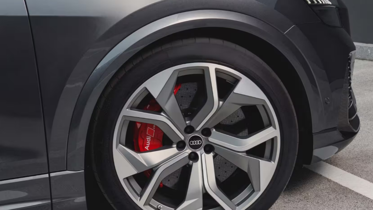 Personalizza la tua Audi RS Q8 con i cerchi in lega da 23’’ a 5 razze a Y con design a rotore e, con i pacchetti design RS, scegli la variante colore più adatta a te. Attraverso le razze dei cerchi è possibile ammirare l’emblema della sportività: i dischi freno carboceramici con pinze freno in Grigio Antracite, Rosso o Blu, disponibili su richiesta.