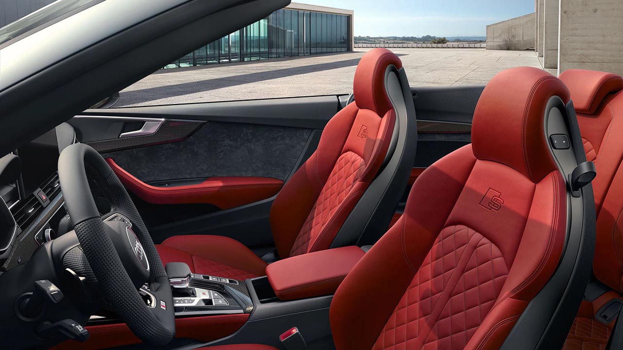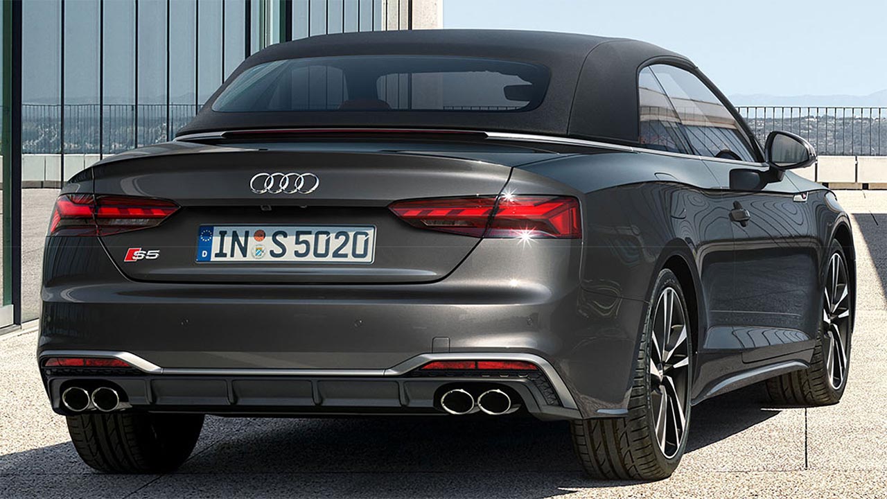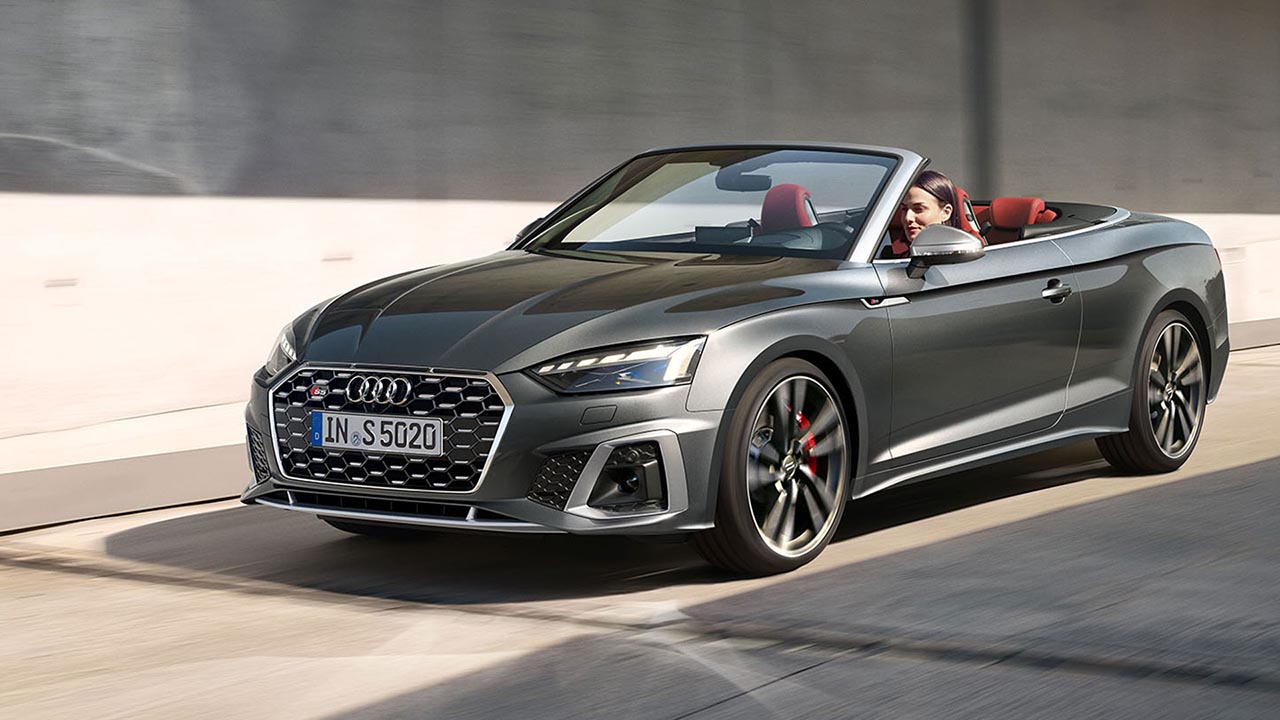 L’esperienza di guida è piacere puro, soprattutto con la capote aperta: ecco cosa significa guidare la nuova Audi S5 Cabriolet. Il linguaggio stilistico e gli elementi specifici S trasmettono tutto il carattere sportivo della vettura. Sul frontale spiccano, ad esempio, il paraurti S, la griglia del radiatore a nido d’ape in nero titanio opaco con inserti in alluminio opaco, le ampie prese d’aria incorniciate e il profilo in alluminio opaco. Sulla fiancata, emergono gli esclusivi cerchi in lega da 18’’, mentre gli specchietti retrovisori in alluminio opaco sottolineano la linea atletica insieme ai battitacco con logo S retroilluminati. Sul posteriore dominano il diffusore S, impreziosito da un inserto in alluminio opaco, i terminali di scarico cromati specifici S e lo spoiler posteriore S. Con la capote chiusa, il tetto si integra nel look con la massima eleganza. Viaggiando a una velocità inferiore ai 50 km/h, la capote si apre in 15 secondi e si chiude in 18.