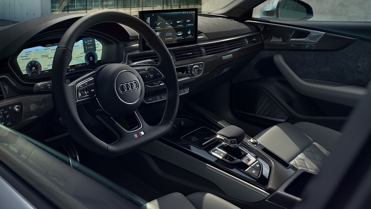 L’intuitivo sistema di infotainment di Audi S5 Coupé TDI può essere utilizzato comodamente tramite il display dell’MMI touch, oppure utilizzando i comandi vocali. È possibile inoltre integrare anche l’Audi virtual cockpit, per avere tutte le informazioni principali del veicolo sempre a disposizione su un comodo schermo 12,3’’ full HD. Inoltre, l’Audi virtual cockpit permette una completa personalizzazione delle sue funzioni attraverso un menu intuitivo e un display orientato verso il conducente, che ne rendono estremamente comodo l’utilizzo. Nel design specifico S, il contagiri è posto al centro del display.