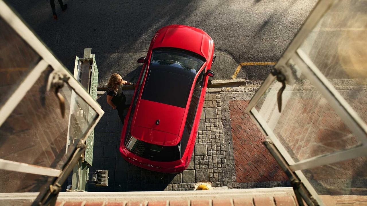 La vista laterale emana tutto il suo fascino grazie all’alta linea di cintura ed alla forma poligonale scolpita nella fiancata. Aggiungete un ulteriore tocco di sportività scegliendo le pinze dei freni verniciate in rosso, disponibili come optional.