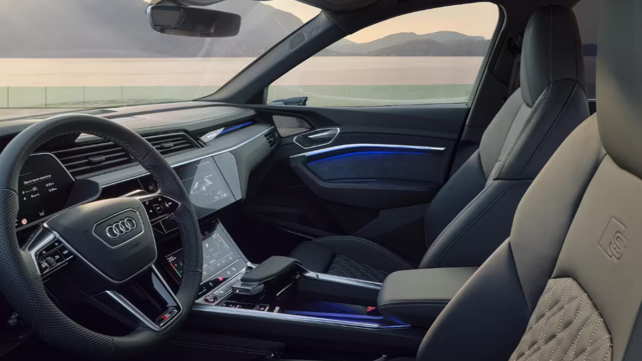 Sperimenta la qualità sportiva premium di Audi SQ8 Sportback e-tron nei sedili anteriori sportivi plus, disponibili come optional, i tappetini con il logo S e gli inserti di alta qualità, disponibili su richiesta, in high-mesh antracite.