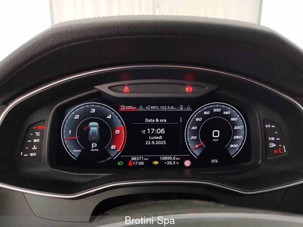 Il nostro consulente Tiziano Tagliazucchi è a disposizione per fornirvi maggiori dettagli inerenti la vettura e alla formula finanziaria più adatta alle vostre esigenze . Optional: Audi phone box Audi pre sense basic Audi smartphone interface Bang & Olufsen Premium Sound System con sonoritA 3D Cerchi in fusione di alluminio a 5 razze doppie a V, 8,5J x 21 Chiave comfort con sbloccaggio del bagagliaio gestito mediante sensori Cielo in tessuto Nero Climatizzazione comfort a 4 zone Cruscotto e rivestimento porta in due pezzi monocolore/multicolore Elementi interni superiori e inferiori in similpelle Eliminate denominazione modello e scritta prestazioni/tecnologia Esterni in look Alluminio Fari Matrix LED HD, fanali di coda a LED e impianto lavafari Funzione Memory per i sedili anteriori Inserti decorativi in Alluminio Diade Argento Jangal Numero di gestione interno Pacchetto assistenza Tour Pacchetto Luci Profilo/Ambiente, a piU colori Pacchetto Vano portaoggetti Pelle Valcona Riconoscimento della segnaletica stradale con telecamera Riscaldamento dei sedili anteriori Ruota di scorta gonfiabile Sedili anteriori con profilo personalizzato e con funzione Memory Sistema di navigazione MMI plus con MMI touch response e Audi virtual cockpit Specchietti esterni regolabili, riscaldabili e ripiegabili Specchietto interno con funzione automatica antiabbagliamento, senza Sterzo integrale dinamico Supporto lombare a 4 vie per i sedili anteriori Supporto LTE per Audi phone box Tasti di comando in look Vetro Nero con feedback tattile e look Alluminio Tetto panoramico scorrevole Verniciatura integrale Vetri Privacy (vetri oscurati) Volante sportivo in pelle multifunzionale e pulsanti a slitta