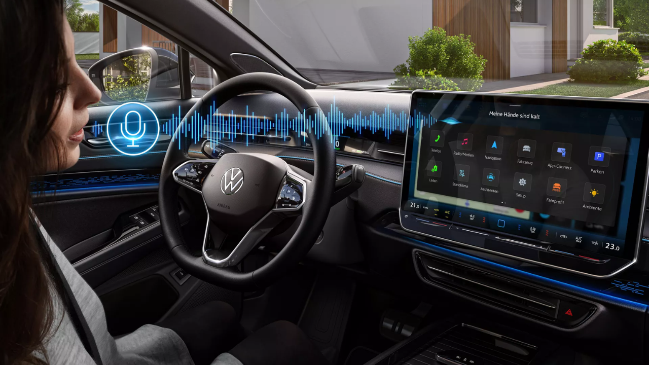 Evita di essere distratto da pulsanti o interruttori durante la guida: mantieni l’attenzione sulla strada e utilizza facilmente le funzioni più importanti della tua ID. con il controllo vocale intuitivo di nuova generazione, ad esempio per la radio, il sistema di navigazione o il telefono. Ti basterà soltanto dire "Ciao Volkswagen" e il tuo assistente digitale ti capirà. Dicendo "Ciao Volkswagen, ho le mani fredde!", attiverai la funzione di riscaldamento del volante e le bocchette d’aerazione intelligenti dirigeranno un flusso di aria calda verso le tue mani. Il tuo assistente digitale potrà anche darti suggerimenti a seconda dell’attuale contesto, ad esempio consigliandoti una determinata playlist o una deviazione dal tuo percorso per evitare il traffico.